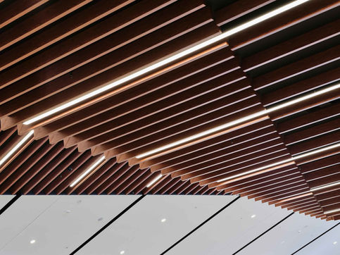 Our powder coated aluminium lengths replicate the species and grain pattern of natural timber. They are lighter, straighter and stronger than real wood, offering a practical and cost effective solution for a large expanse.