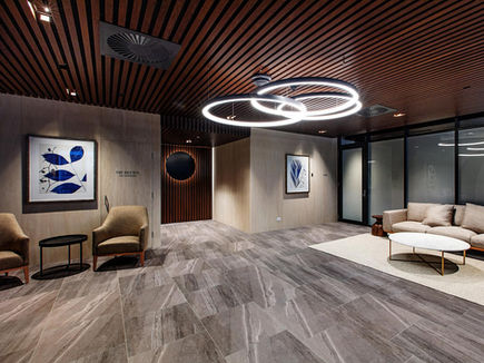 Our Avista Knotwood ceiling systems make a visually stunning architectural statement.